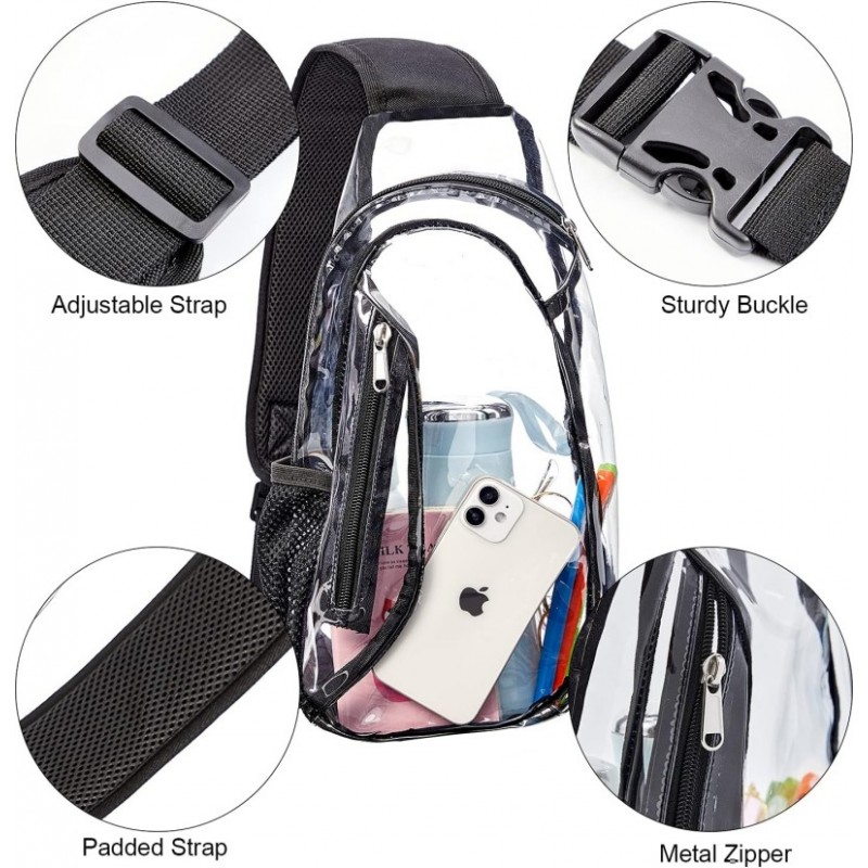 *Save Time& Convenience: Transparent Chest Backpack with completely see through all around. Pass through security with the clear sling bag to avoid being rejected at the airport or at the stadium gate.